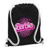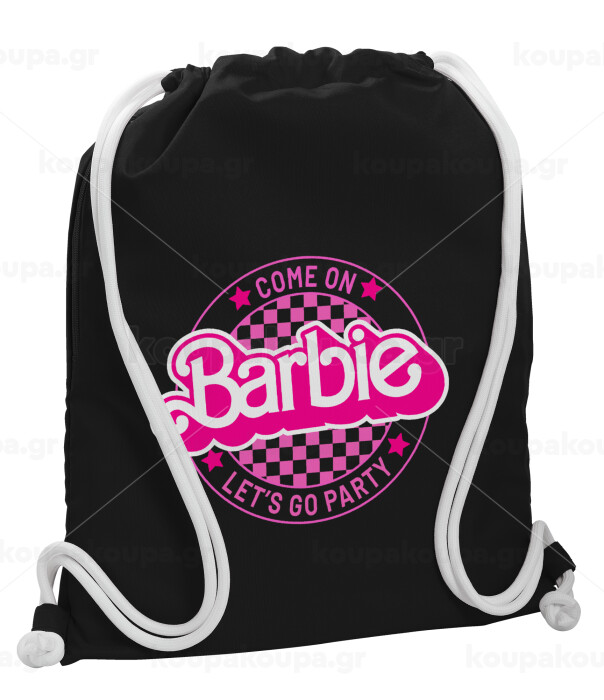 Come On Barbie Lets Go Party , Τσάντα πλάτης πουγκί GYMBAG Μαύρη, με τσέπη (40x48cm) & χονδρά λευκά κορδόνια