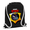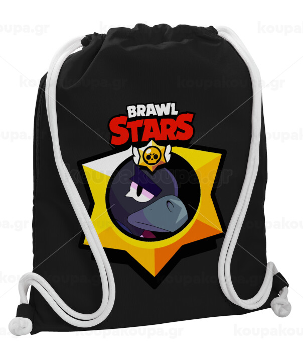 Brawl Stars Crow, Τσάντα πλάτης πουγκί GYMBAG Μαύρη, με τσέπη (40x48cm) & χονδρά λευκά κορδόνια