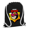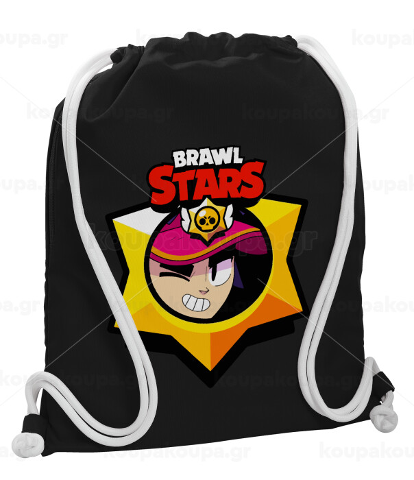 Brawl Stars Fang, Τσάντα πλάτης πουγκί GYMBAG Μαύρη, με τσέπη (40x48cm) & χονδρά λευκά κορδόνια