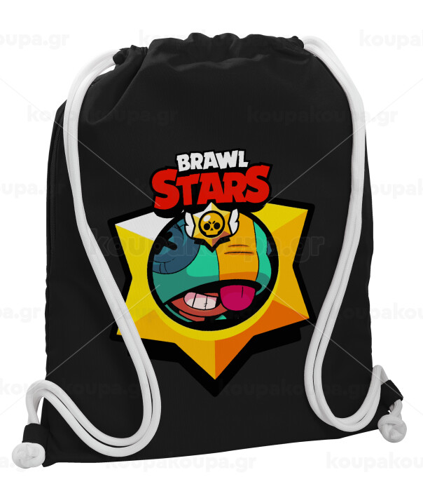 Brawl Stars Leon, Τσάντα πλάτης πουγκί GYMBAG Μαύρη, με τσέπη (40x48cm) & χονδρά λευκά κορδόνια