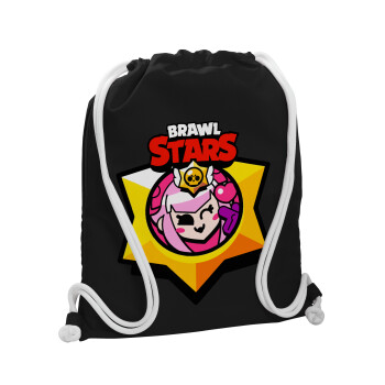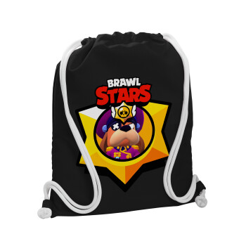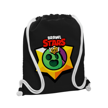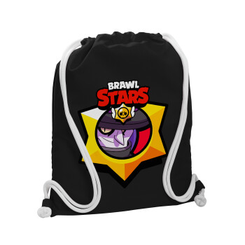 Brawl Stars Squeak, Τσάντα πλάτης πουγκί GYMBAG Μαύρη, με τσέπη (40x48cm) & χονδρά λευκά κορδόνια