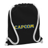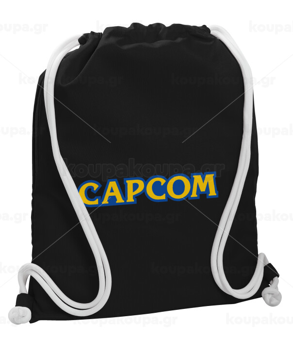 Capcom, Τσάντα πλάτης πουγκί GYMBAG Μαύρη, με τσέπη (40x48cm) & χονδρά λευκά κορδόνια