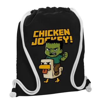 Chicken Jockey, Τσάντα πλάτης πουγκί GYMBAG Μαύρη, με τσέπη (40x48cm) & χονδρά λευκά κορδόνια