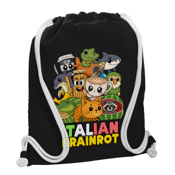Italian Brainrot friends, Τσάντα πλάτης πουγκί GYMBAG Μαύρη, με τσέπη (40x48cm) & χονδρά λευκά κορδόνια