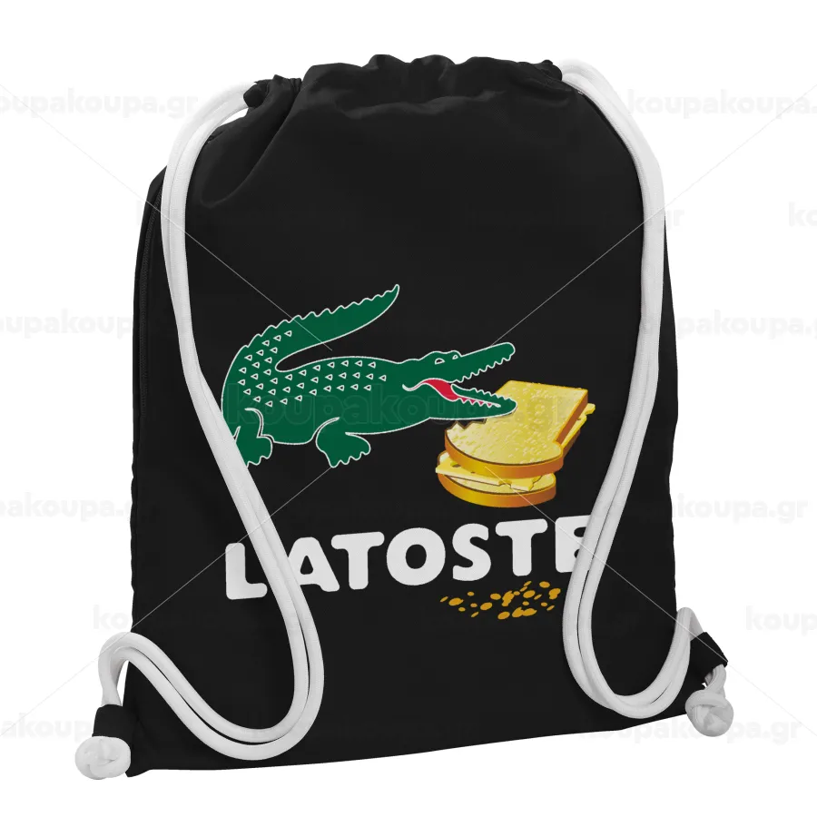 Latoste, Τσάντα πλάτης πουγκί GYMBAG Μαύρη, με τσέπη (40x48cm) & χονδρά λευκά κορδόνια