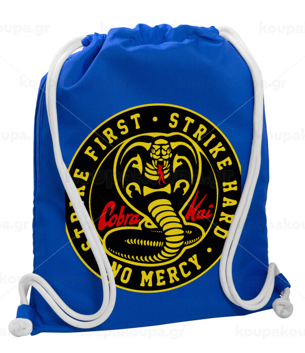 cobra kai strike first dojo, Τσάντα πλάτης πουγκί GYMBAG Μπλε, με τσέπη (40x48cm) & χονδρά κορδόνια