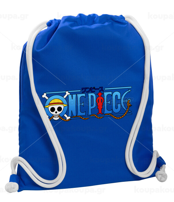 Onepiece logo, Τσάντα πλάτης πουγκί GYMBAG Μπλε, με τσέπη (40x48cm) & χονδρά κορδόνια