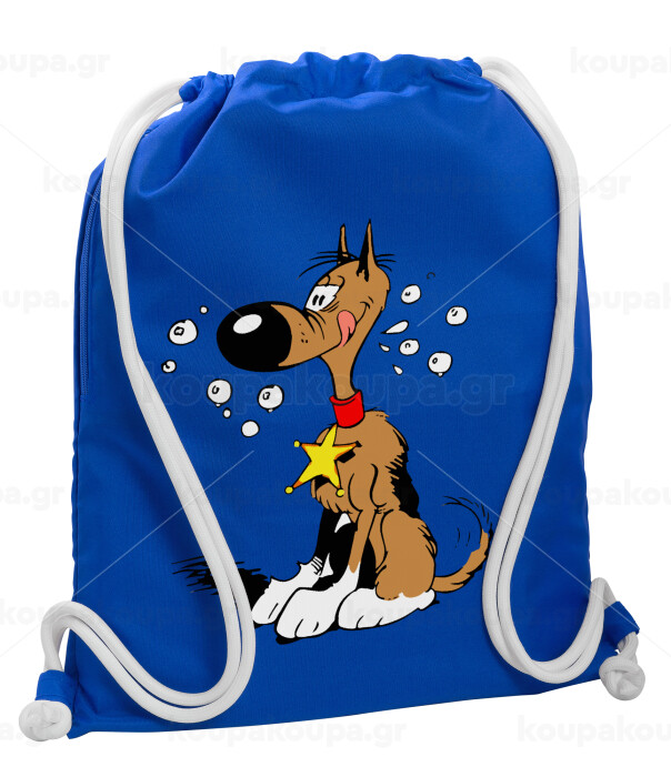 Rantanplan (Ρανταπλάν), Τσάντα πλάτης πουγκί GYMBAG Μπλε, με τσέπη (40x48cm) & χονδρά κορδόνια