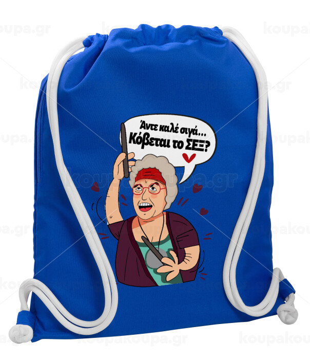 Αντε καλέ, σιγά, κόβεται το σέξ ;, Τσάντα πλάτης πουγκί GYMBAG Μπλε, με τσέπη (40x48cm) & χονδρά κορδόνια