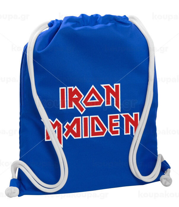 Iron maiden, Τσάντα πλάτης πουγκί GYMBAG Μπλε, με τσέπη (40x48cm) & χονδρά κορδόνια