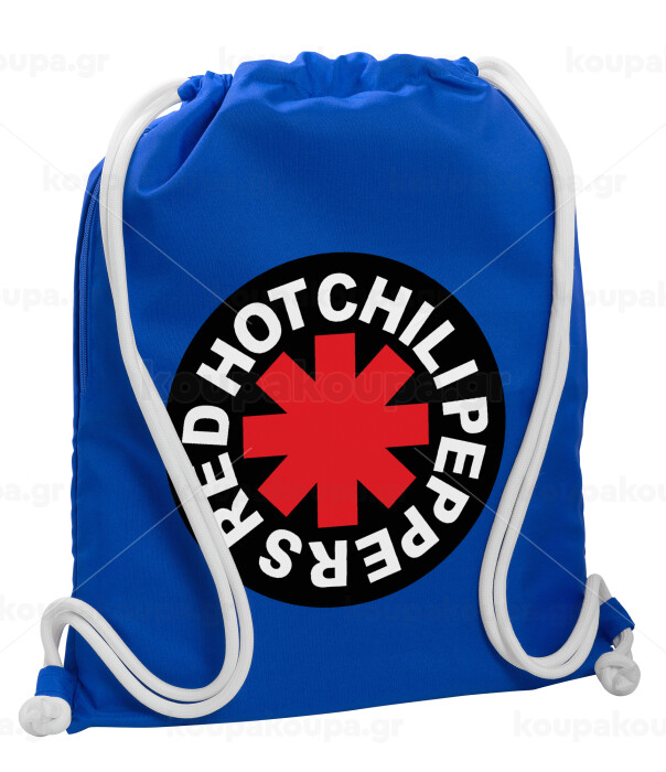 Red Hot Chili Peppers, Τσάντα πλάτης πουγκί GYMBAG Μπλε, με τσέπη (40x48cm) & χονδρά κορδόνια