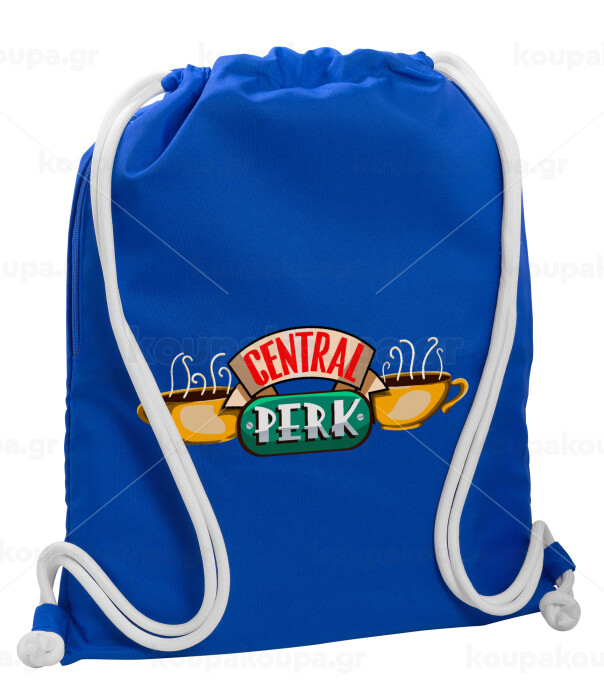 Central perk, Τσάντα πλάτης πουγκί GYMBAG Μπλε, με τσέπη (40x48cm) & χονδρά κορδόνια