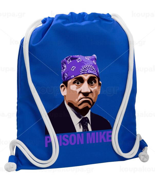 Prison Mike The office, Τσάντα πλάτης πουγκί GYMBAG Μπλε, με τσέπη (40x48cm) & χονδρά κορδόνια