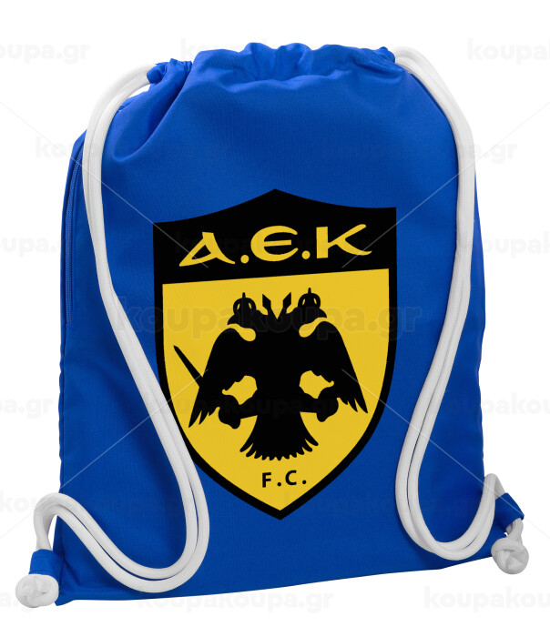 ΑΕΚ, Τσάντα πλάτης πουγκί GYMBAG Μπλε, με τσέπη (40x48cm) & χονδρά κορδόνια