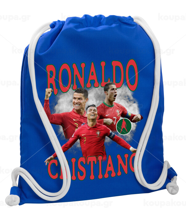 Κριστιάνο Ρονάλντο, Τσάντα πλάτης πουγκί GYMBAG Μπλε, με τσέπη (40x48cm) & χονδρά κορδόνια
