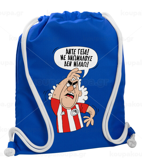 Τάκης, Άντε γεια, με ανώμαλους δεν μιλάω!, Τσάντα πλάτης πουγκί GYMBAG Μπλε, με τσέπη (40x48cm) & χονδρά κορδόνια