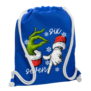 Christmas Meme SIX SEVEN (67), Τσάντα πλάτης πουγκί GYMBAG Μπλε, με τσέπη (40x48cm) & χονδρά κορδόνια