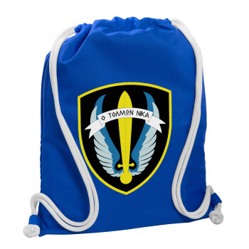 Έμβλημα Μονάδων Καταδρομών Ο Τολμων Νικα - Λοκ, Τσάντα πλάτης πουγκί GYMBAG Μπλε, με τσέπη (40x48cm) & χονδρά κορδόνια