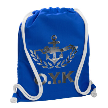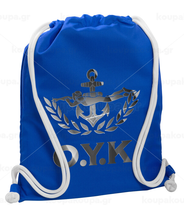 Ο.Υ.Κ., Τσάντα πλάτης πουγκί GYMBAG Μπλε, με τσέπη (40x48cm) & χονδρά κορδόνια