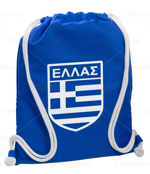 Ελλάς, Τσάντα πλάτης πουγκί GYMBAG Μπλε, με τσέπη (40x48cm) & χονδρά κορδόνια