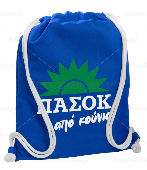 ΠΑΣΟΚ από κούνια, Τσάντα πλάτης πουγκί GYMBAG Μπλε, με τσέπη (40x48cm) & χονδρά κορδόνια