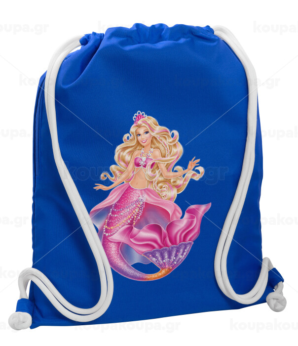 Barbie γοργόνα μπλε, Τσάντα πλάτης πουγκί GYMBAG Μπλε, με τσέπη (40x48cm) & χονδρά κορδόνια