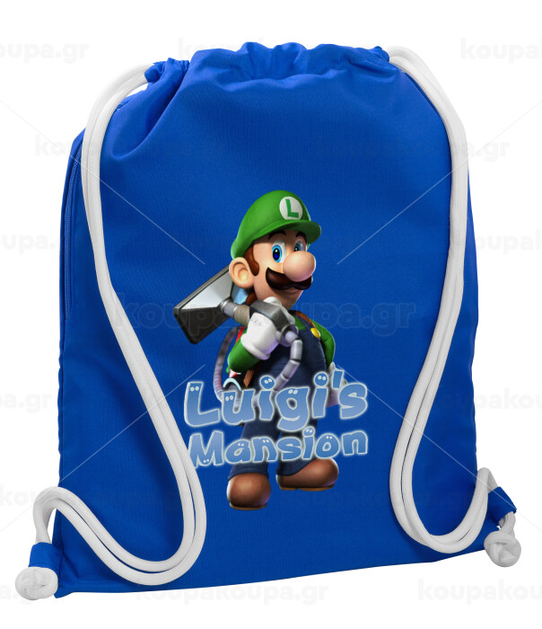 Luigi's Mansion, Τσάντα πλάτης πουγκί GYMBAG Μπλε, με τσέπη (40x48cm) & χονδρά κορδόνια