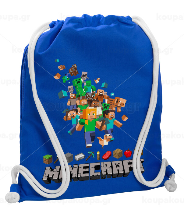 Minecraft adventure, Τσάντα πλάτης πουγκί GYMBAG Μπλε, με τσέπη (40x48cm) & χονδρά κορδόνια