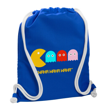 Pacman waka waka waka, Τσάντα πλάτης πουγκί GYMBAG Μπλε, με τσέπη (40x48cm) & χονδρά κορδόνια