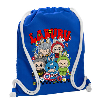 Labubu superheroes, Τσάντα πλάτης πουγκί GYMBAG Μπλε, με τσέπη (40x48cm) & χονδρά κορδόνια