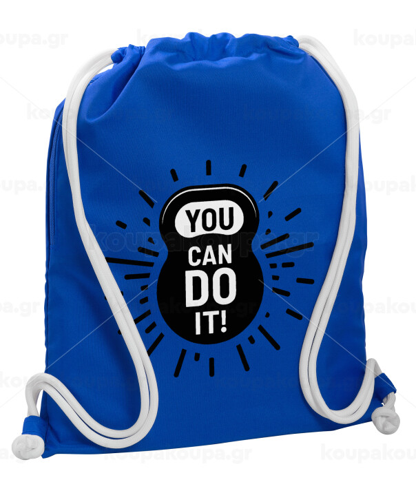 You can do it, Τσάντα πλάτης πουγκί GYMBAG Μπλε, με τσέπη (40x48cm) & χονδρά κορδόνια