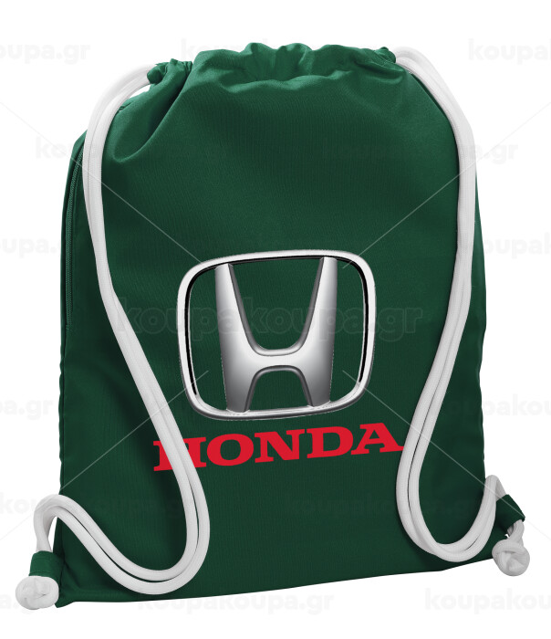 HONDA, Τσάντα πλάτης πουγκί GYMBAG BOTTLE GREEN, με τσέπη (40x48cm) & χονδρά λευκά κορδόνια