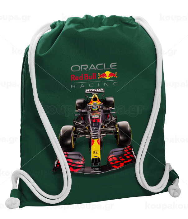 Redbull Racing Team F1, Τσάντα πλάτης πουγκί GYMBAG BOTTLE GREEN, με τσέπη (40x48cm) & χονδρά λευκά κορδόνια