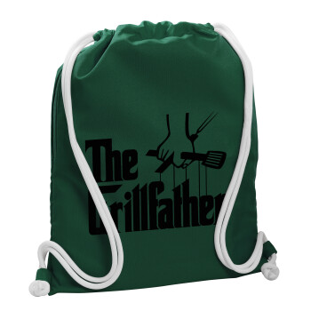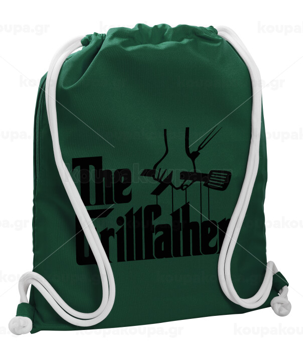 The Grill Father, Τσάντα πλάτης πουγκί GYMBAG BOTTLE GREEN, με τσέπη (40x48cm) & χονδρά λευκά κορδόνια