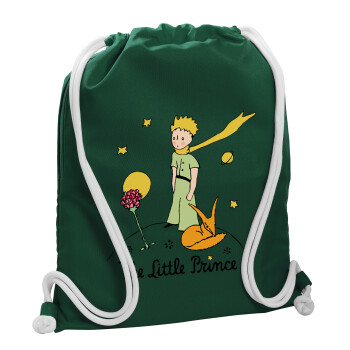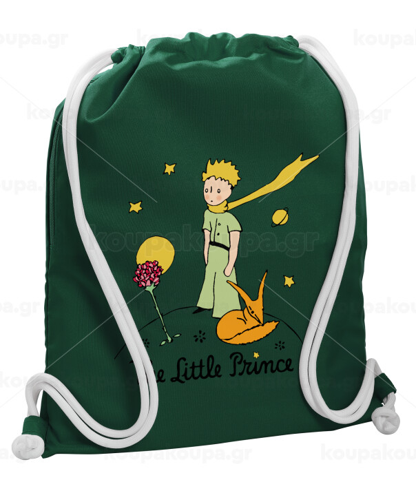 Ο μικρός πρίγκιπας classic, Τσάντα πλάτης πουγκί GYMBAG BOTTLE GREEN, με τσέπη (40x48cm) & χονδρά λευκά κορδόνια