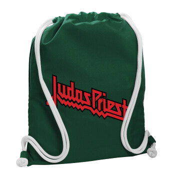 Judas Priest, Τσάντα πλάτης πουγκί GYMBAG BOTTLE GREEN, με τσέπη (40x48cm) & χονδρά λευκά κορδόνια