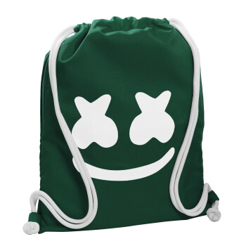 Marshmello, Τσάντα πλάτης πουγκί GYMBAG BOTTLE GREEN, με τσέπη (40x48cm) & χονδρά λευκά κορδόνια