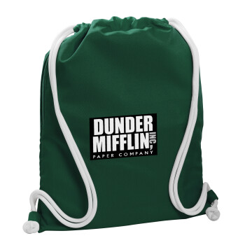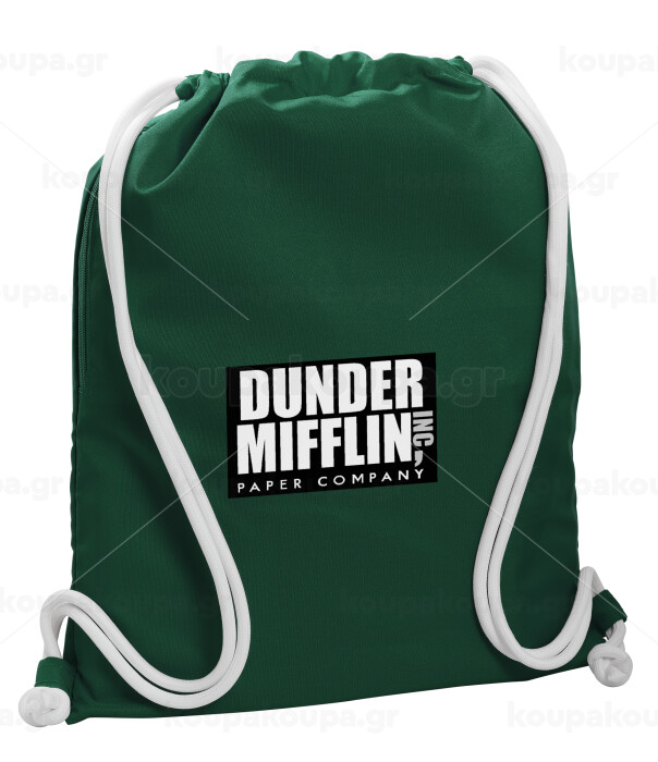 Dunder Mifflin, Inc Paper Company, Τσάντα πλάτης πουγκί GYMBAG BOTTLE GREEN, με τσέπη (40x48cm) & χονδρά λευκά κορδόνια