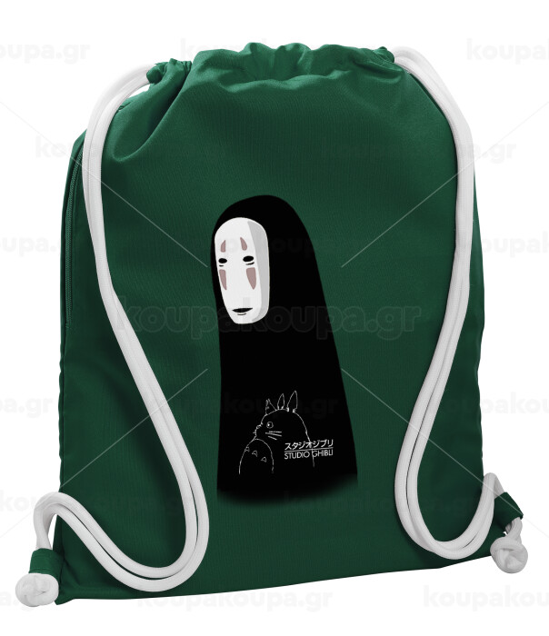 Spirited Away No Face, Τσάντα πλάτης πουγκί GYMBAG BOTTLE GREEN, με τσέπη (40x48cm) & χονδρά λευκά κορδόνια