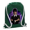 Wednesday moonlight, Τσάντα πλάτης πουγκί GYMBAG BOTTLE GREEN, με τσέπη (40x48cm) & χονδρά λευκά κορδόνια