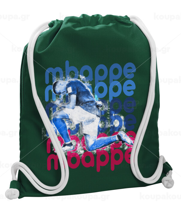 Κιλιάν Μπαπέ, Τσάντα πλάτης πουγκί GYMBAG BOTTLE GREEN, με τσέπη (40x48cm) & χονδρά λευκά κορδόνια