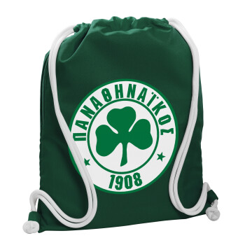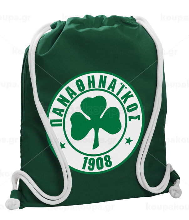 ΠΑΟ Παναθηναϊκός, Τσάντα πλάτης πουγκί GYMBAG BOTTLE GREEN, με τσέπη (40x48cm) & χονδρά λευκά κορδόνια