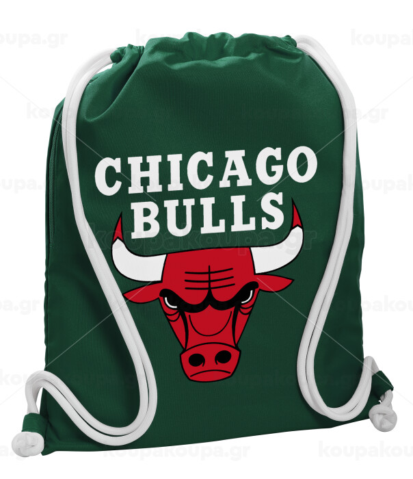 Chicago Bulls, Τσάντα πλάτης πουγκί GYMBAG BOTTLE GREEN, με τσέπη (40x48cm) & χονδρά λευκά κορδόνια