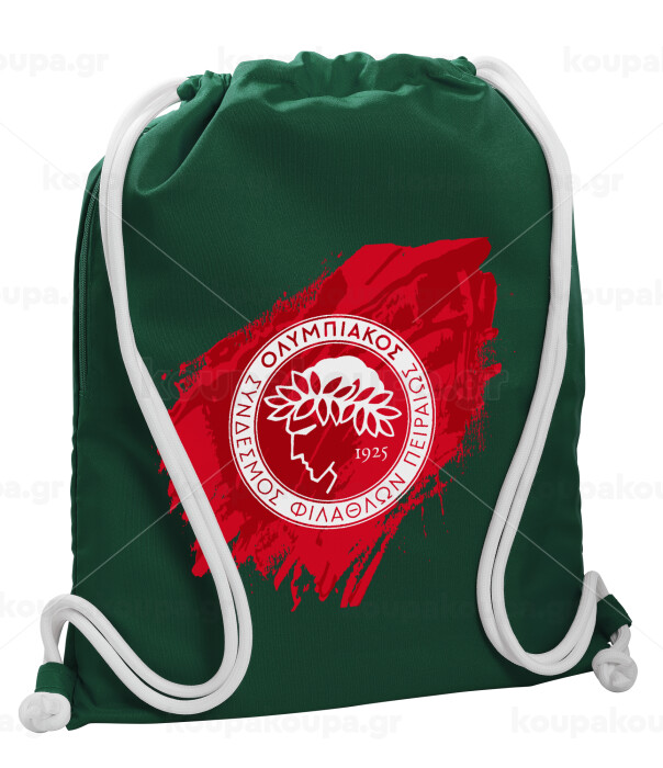 Olympiacos F.C., Τσάντα πλάτης πουγκί GYMBAG BOTTLE GREEN, με τσέπη (40x48cm) & χονδρά λευκά κορδόνια