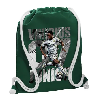 Vinícius Júnior (Βινίσιους Ζούνιορ), Τσάντα πλάτης πουγκί GYMBAG BOTTLE GREEN, με τσέπη (40x48cm) & χονδρά λευκά κορδόνια