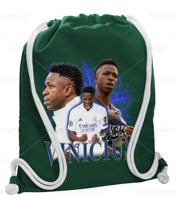 Vinicius Junior, Τσάντα πλάτης πουγκί GYMBAG BOTTLE GREEN, με τσέπη (40x48cm) & χονδρά λευκά κορδόνια