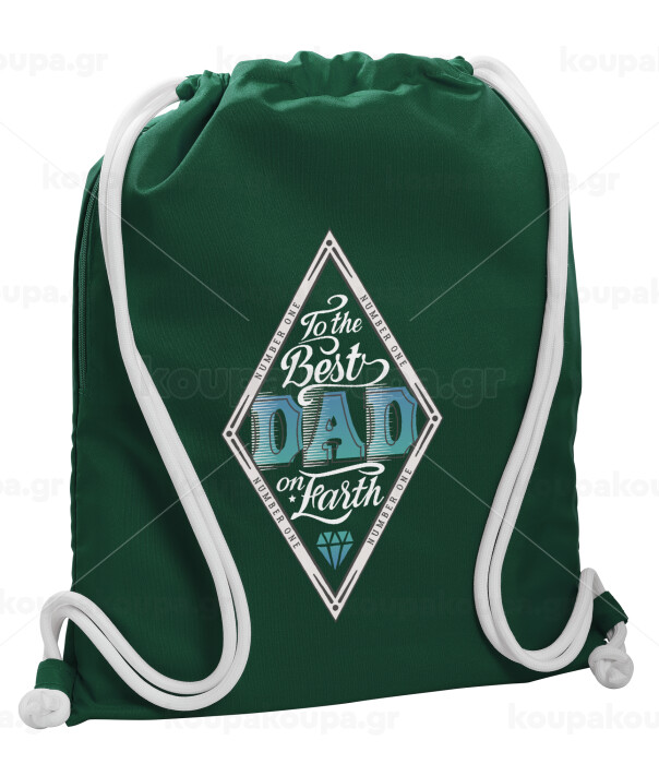 To the best DAD on earth, Τσάντα πλάτης πουγκί GYMBAG BOTTLE GREEN, με τσέπη (40x48cm) & χονδρά λευκά κορδόνια