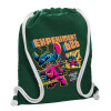 Stitch Experiment 626, Τσάντα πλάτης πουγκί GYMBAG BOTTLE GREEN, με τσέπη (40x48cm) & χονδρά λευκά κορδόνια