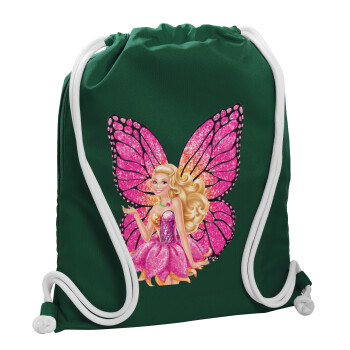 Barbie Νεράιδα, Τσάντα πλάτης πουγκί GYMBAG BOTTLE GREEN, με τσέπη (40x48cm) & χονδρά λευκά κορδόνια