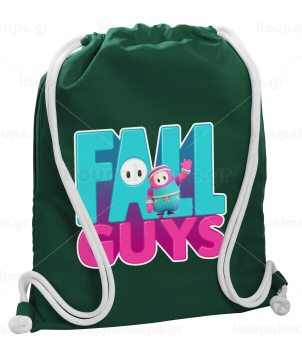 FALL GUYS, Τσάντα πλάτης πουγκί GYMBAG BOTTLE GREEN, με τσέπη (40x48cm) & χονδρά λευκά κορδόνια